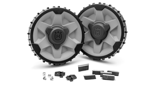 Haarduvust parandaval rattakomplektil on kõrge mustriga rattad ja rattaharjad, mis tagavad suurepärase haarduvuse ebaühtlasel ja suuremate kallakutega murul.